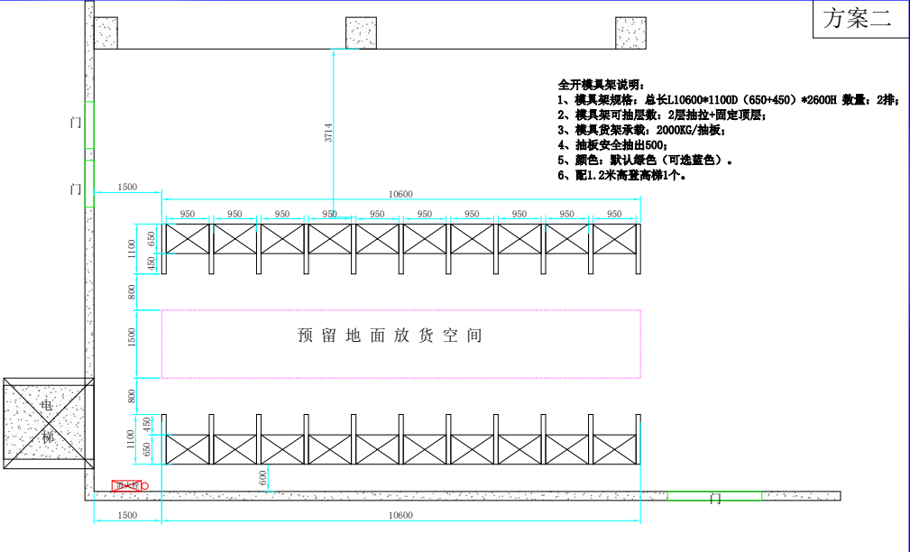 以上案例是最近一個客戶找到我,讓去看一下他們場地模具幫忙出個貨架方案,由于客戶的模具是比較大型,重量也比一般的模具要重,我們這邊當(dāng)時沒給出方案,和客戶約了時間去場地實(shí)地考察,工程考察完根據(jù)客戶場地模具大小的實(shí)際情況給客戶出了兩個方案,最后客戶選擇了方案2
